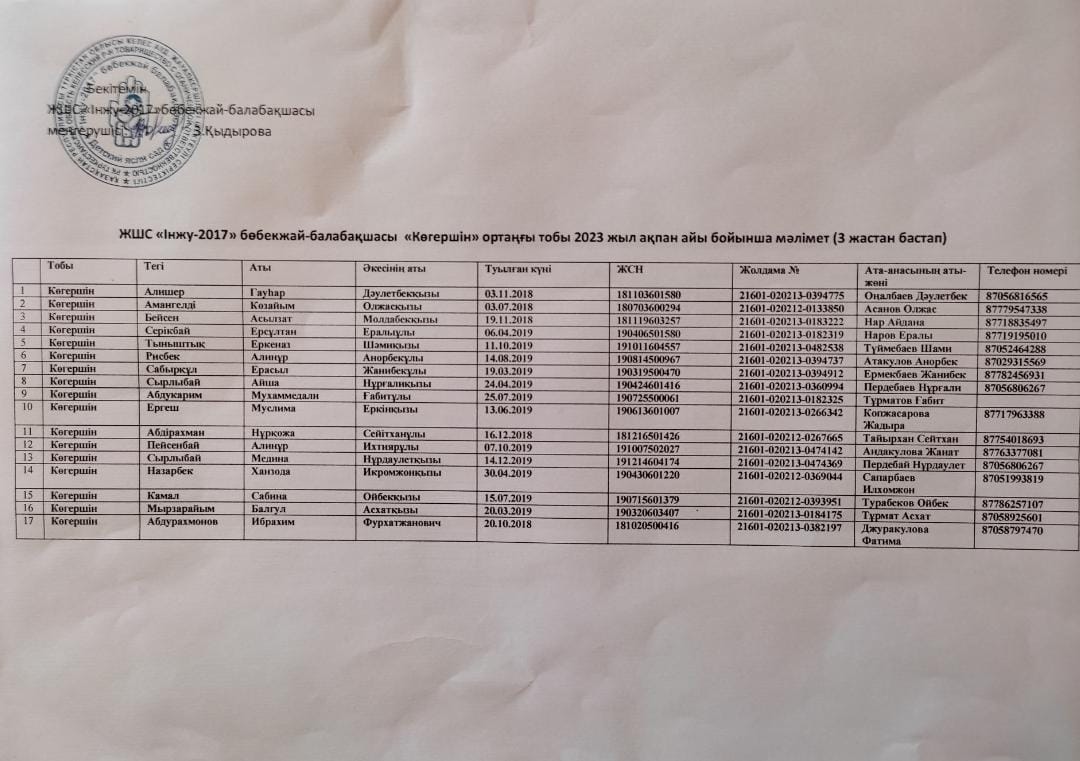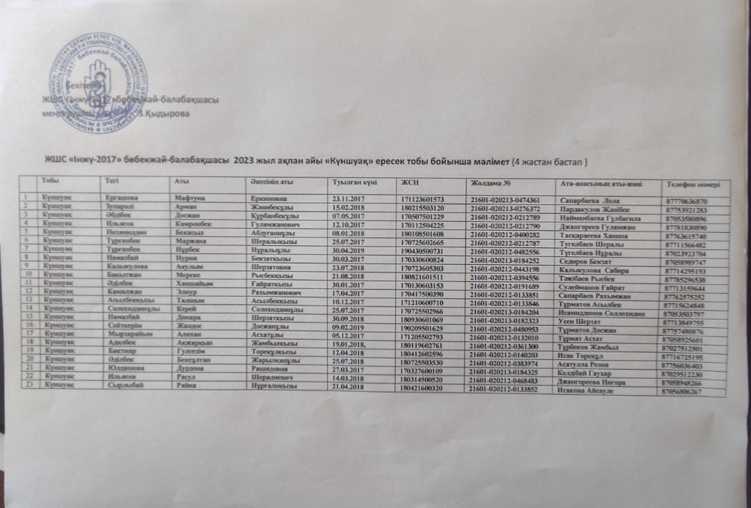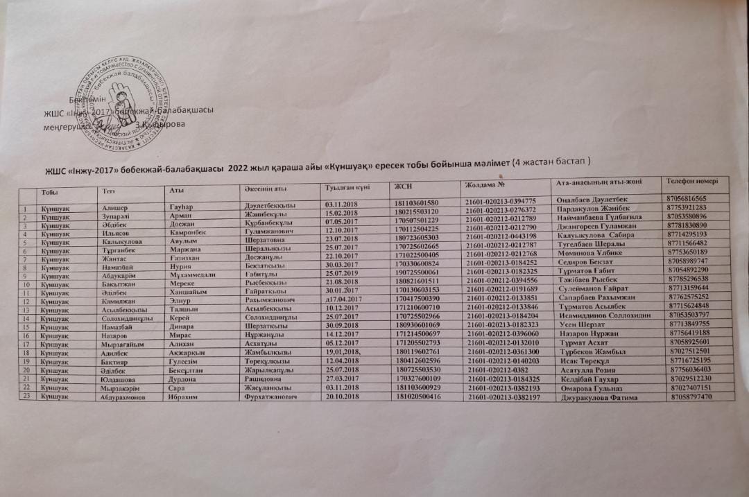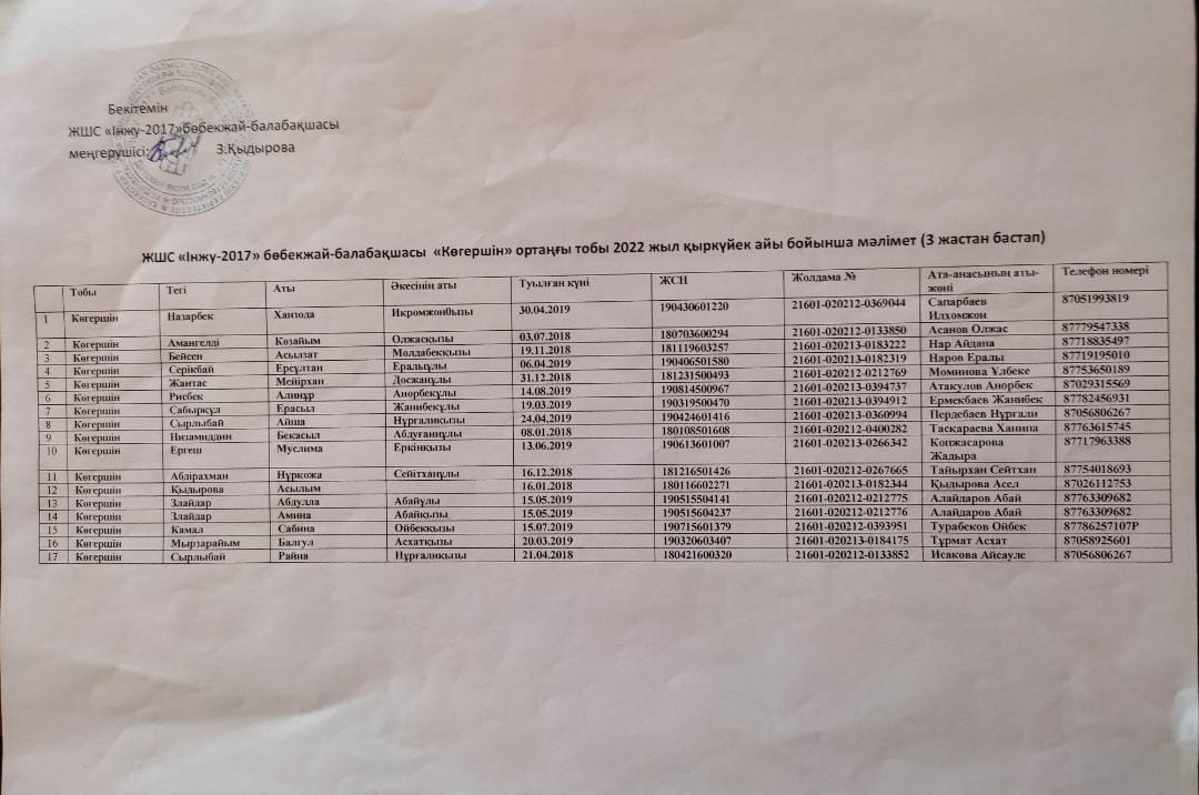 ЖШС «Інжу - 2017» бөбекжай - бақшасы