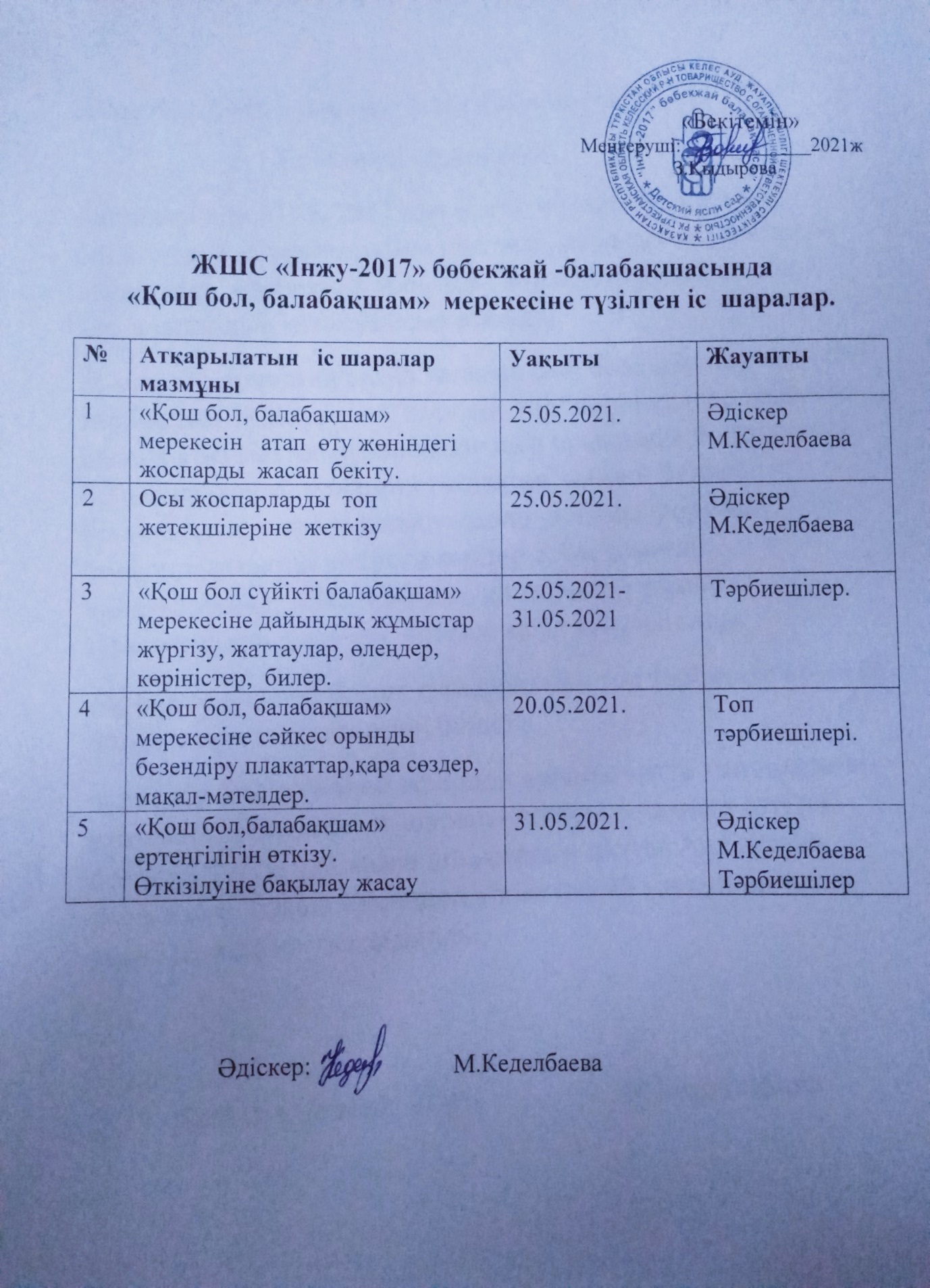 ЖШС «Інжу - 2017» бөбекжай - бақшасы