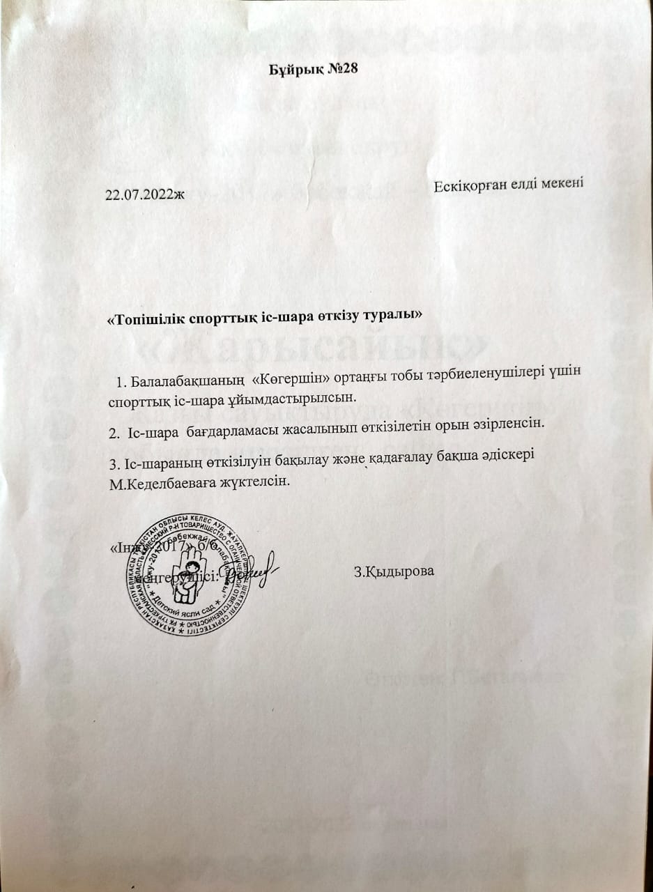 ЖШС «Інжу - 2017» бөбекжай - бақшасы