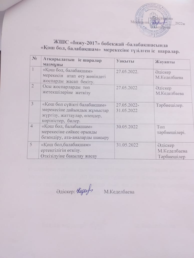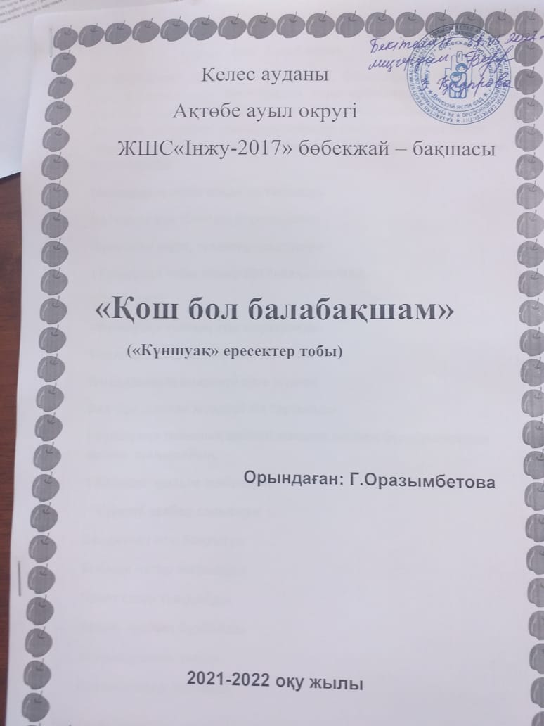 ЖШС «Інжу - 2017» бөбекжай - бақшасы