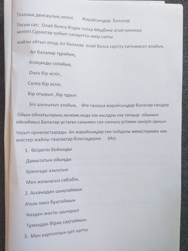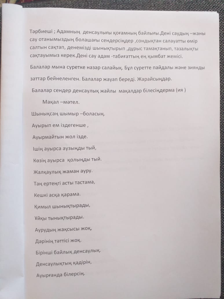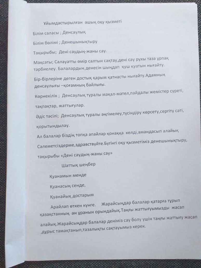 «Дені саудың жаны сау» ( Ұйымдастырылған ашық оқу қызметі)