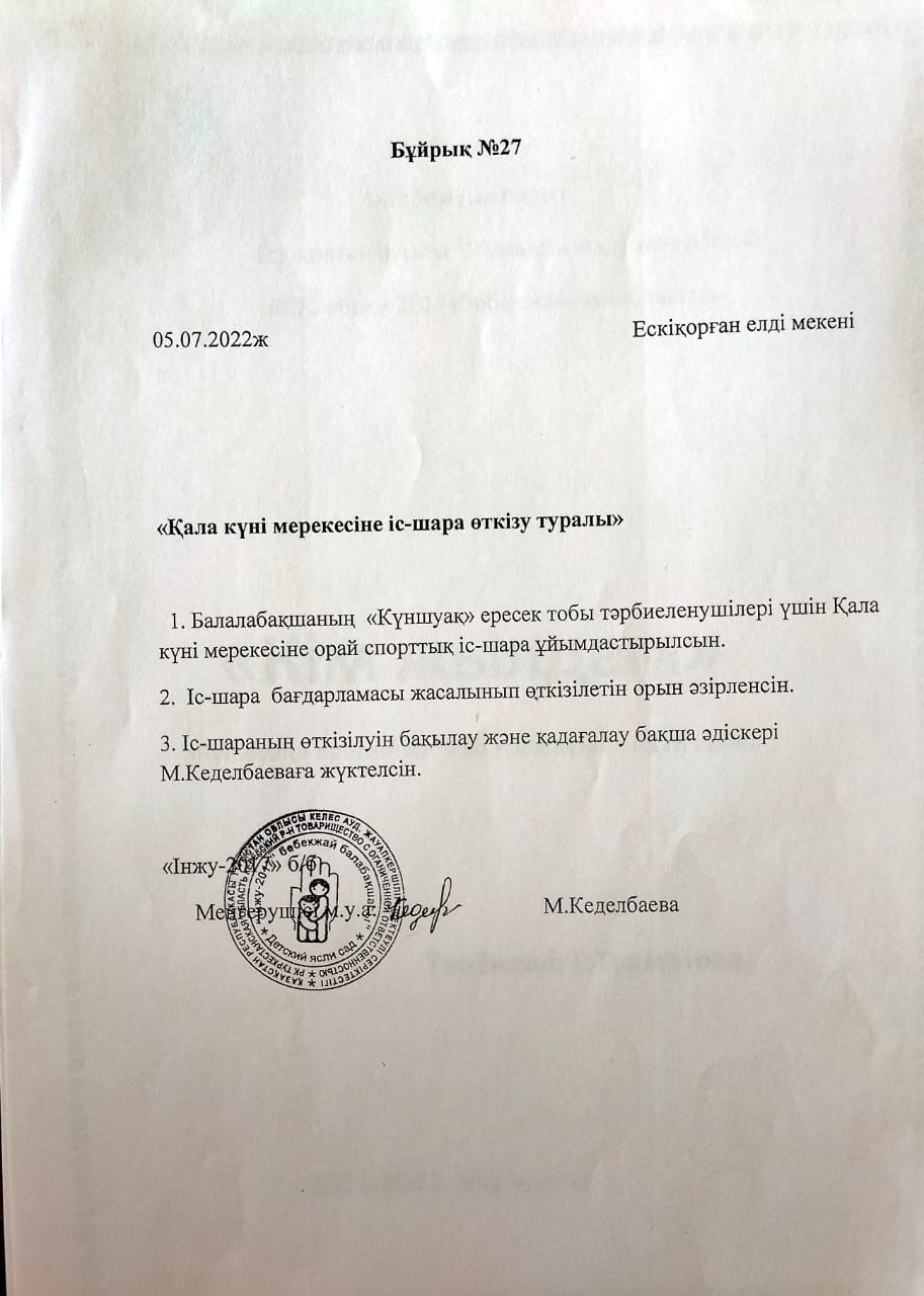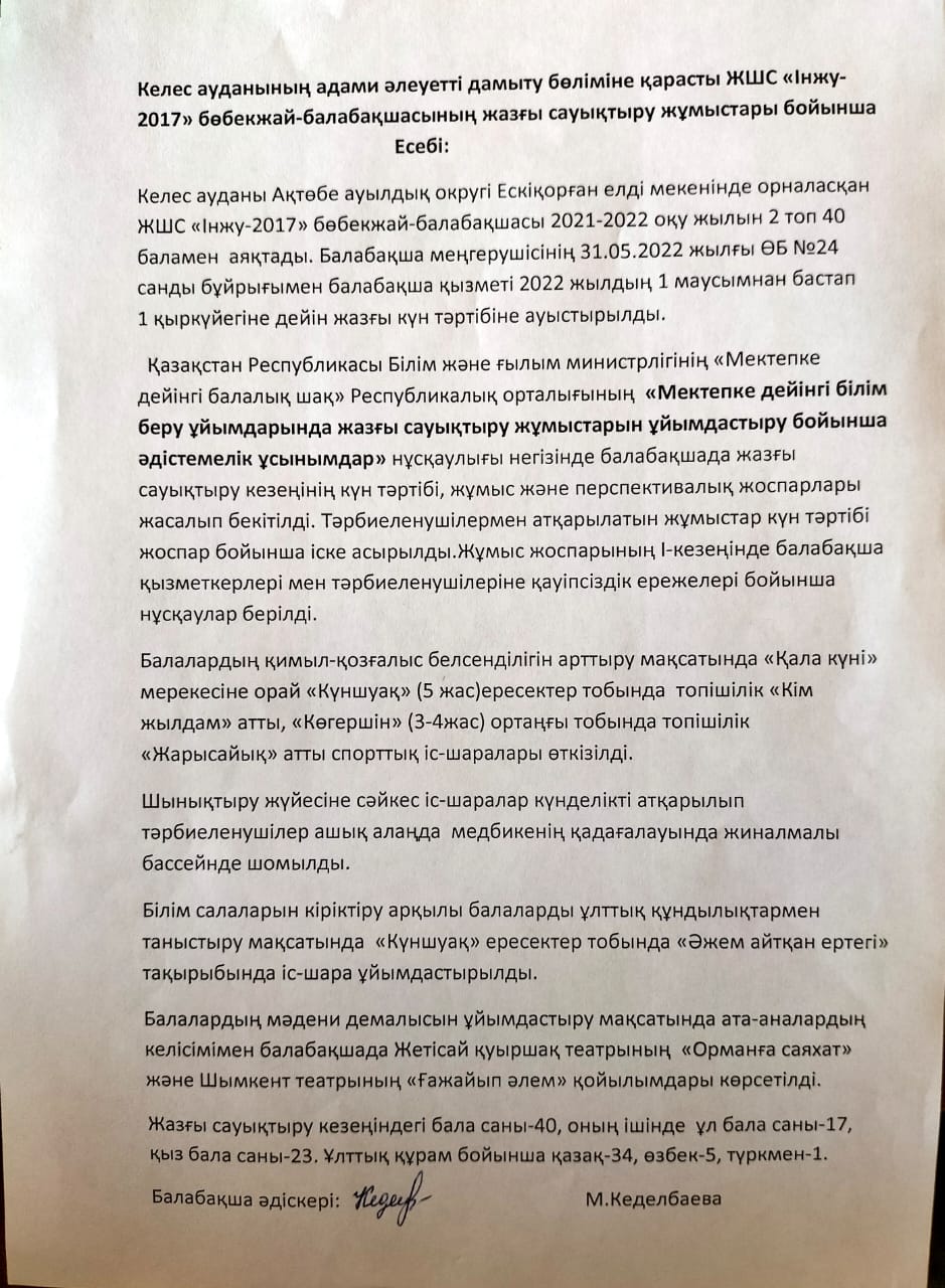 ЖШС «Інжу - 2017» бөбекжай - бақшасы