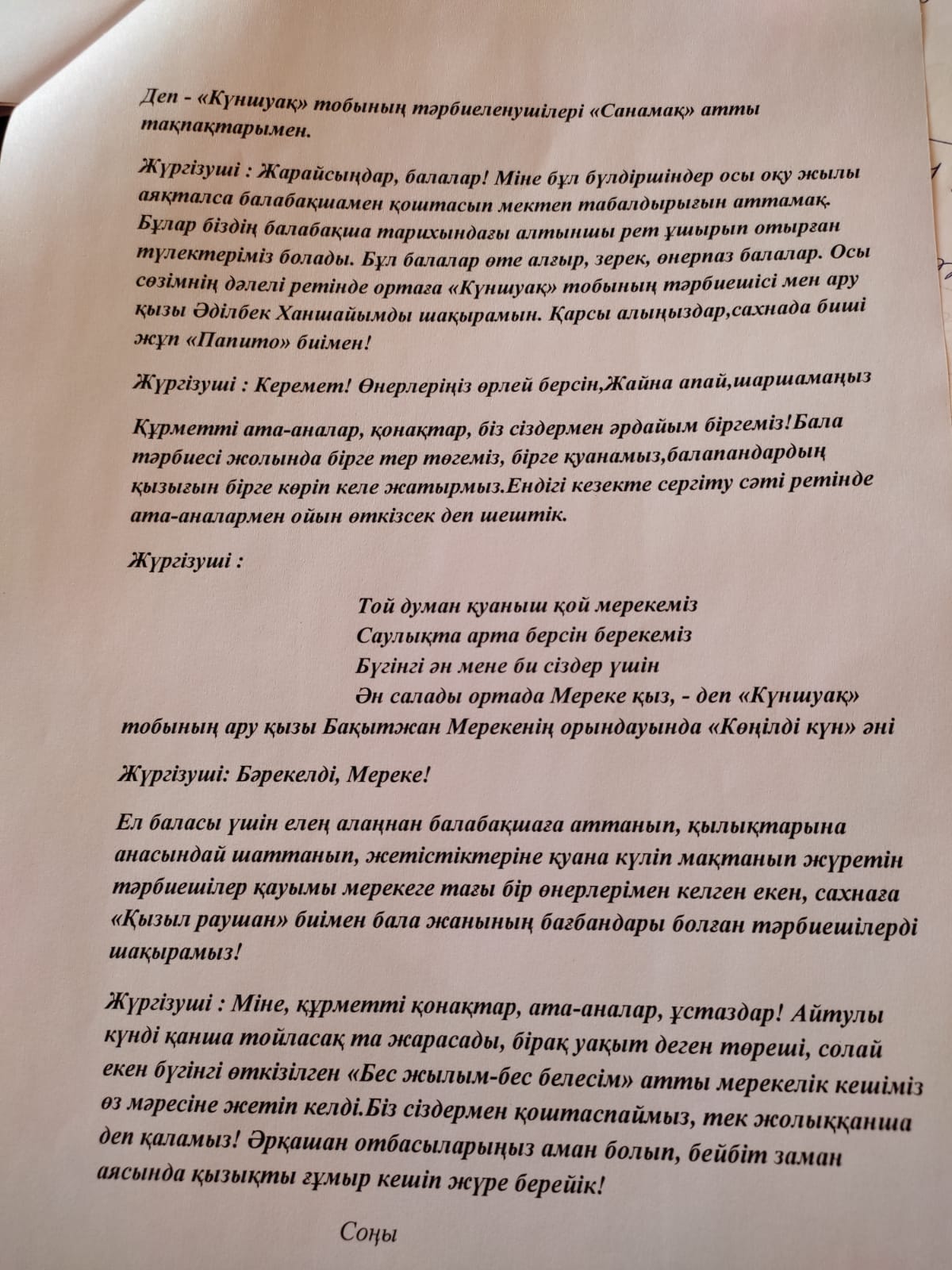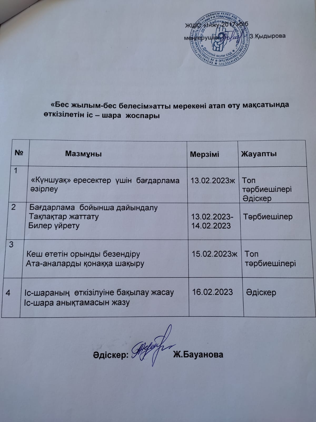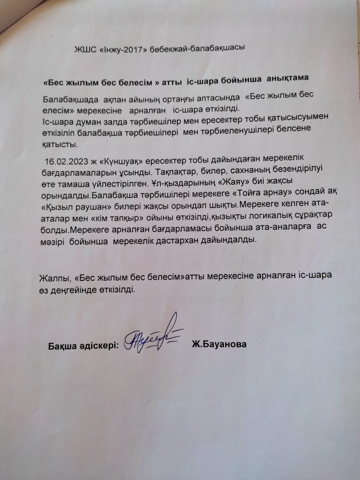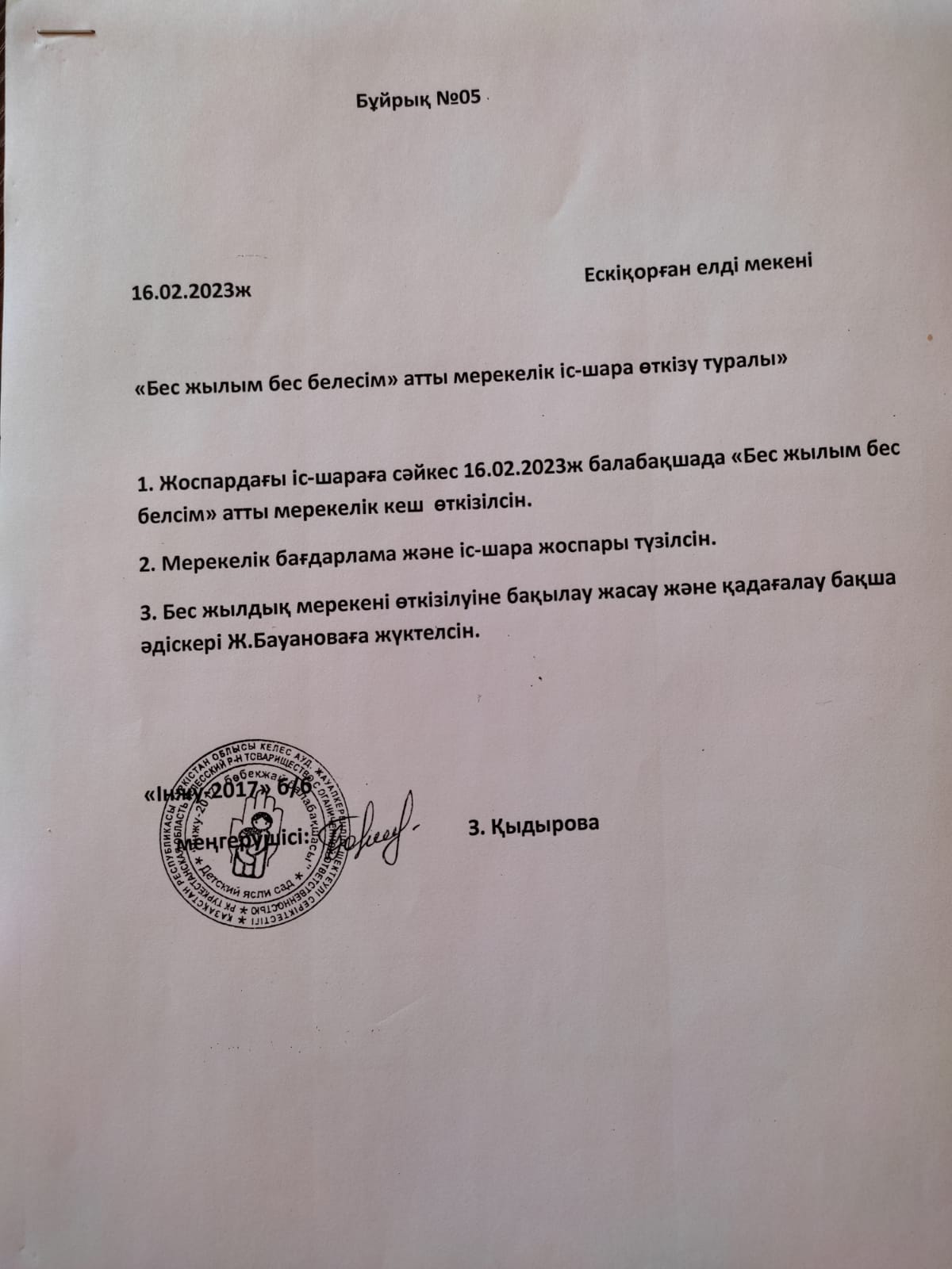 «Бес жылым-бес белесім» (жоспардан тыс)