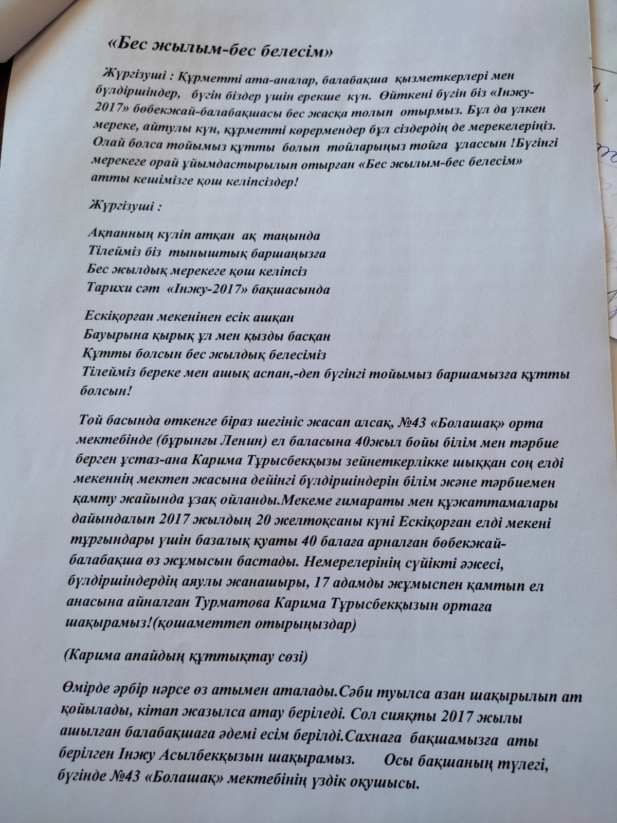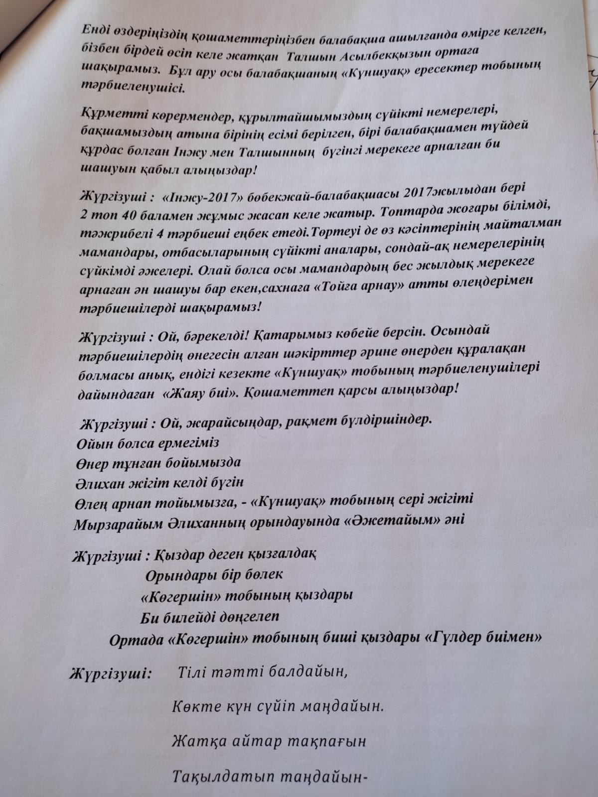 ЖШС «Інжу - 2017» бөбекжай - бақшасы