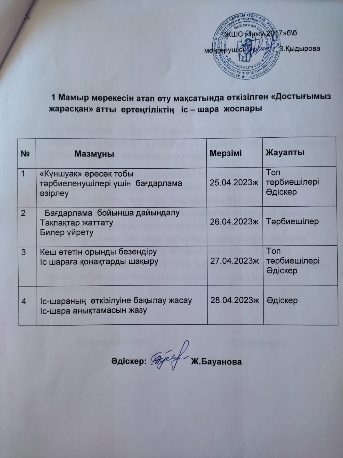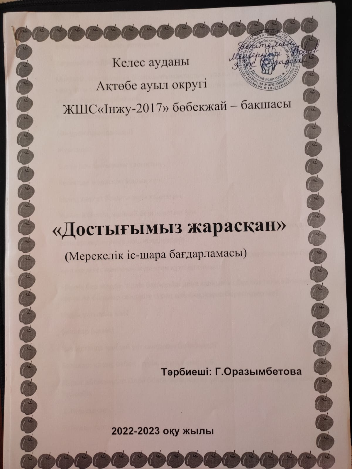ЖШС «Інжу - 2017» бөбекжай - бақшасы