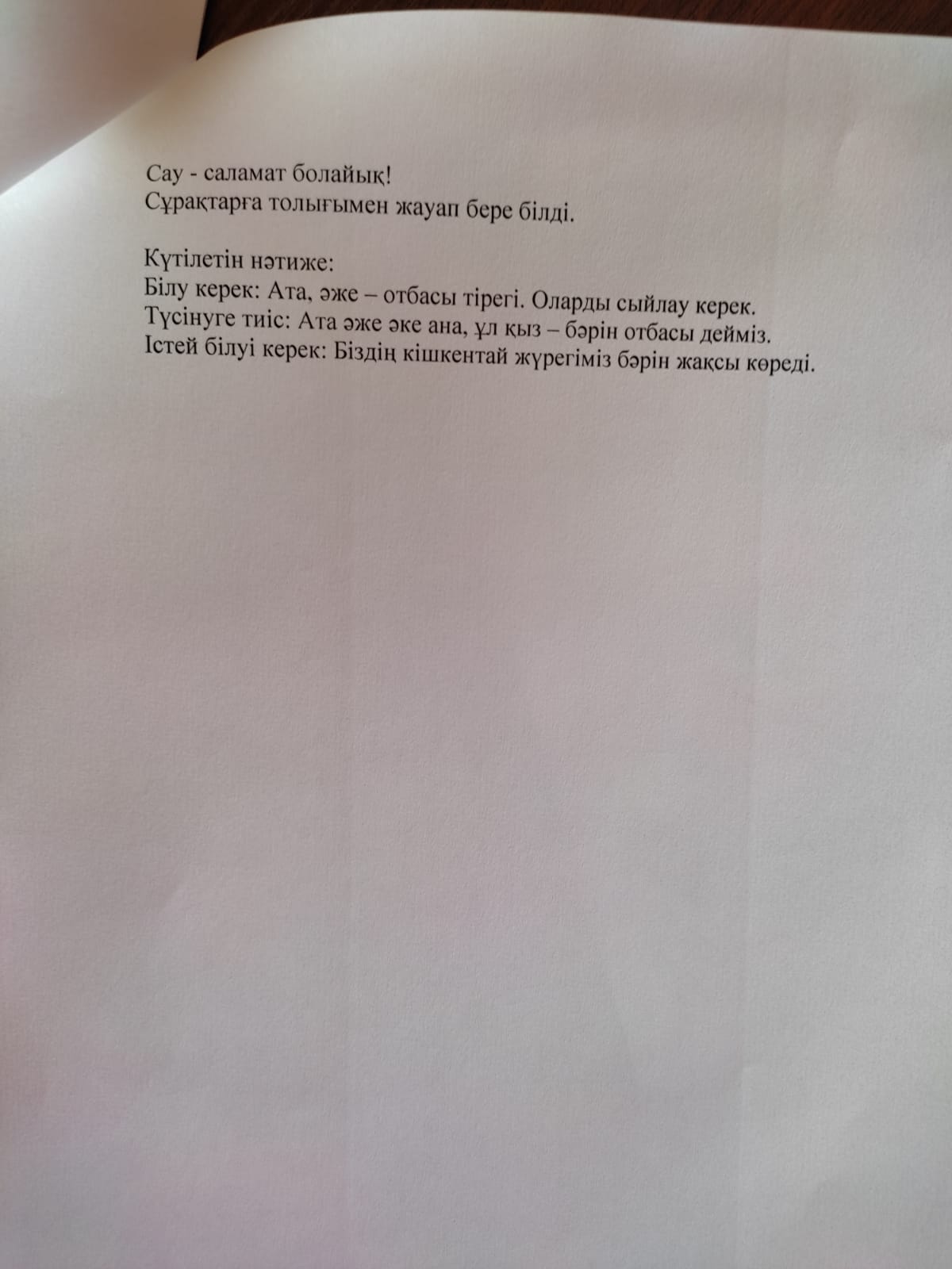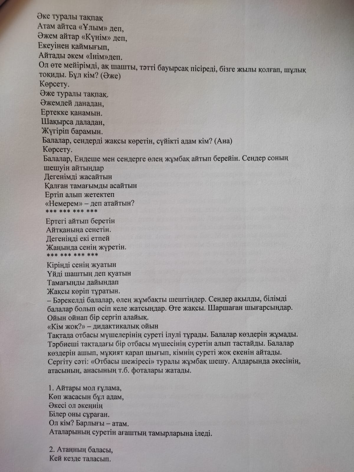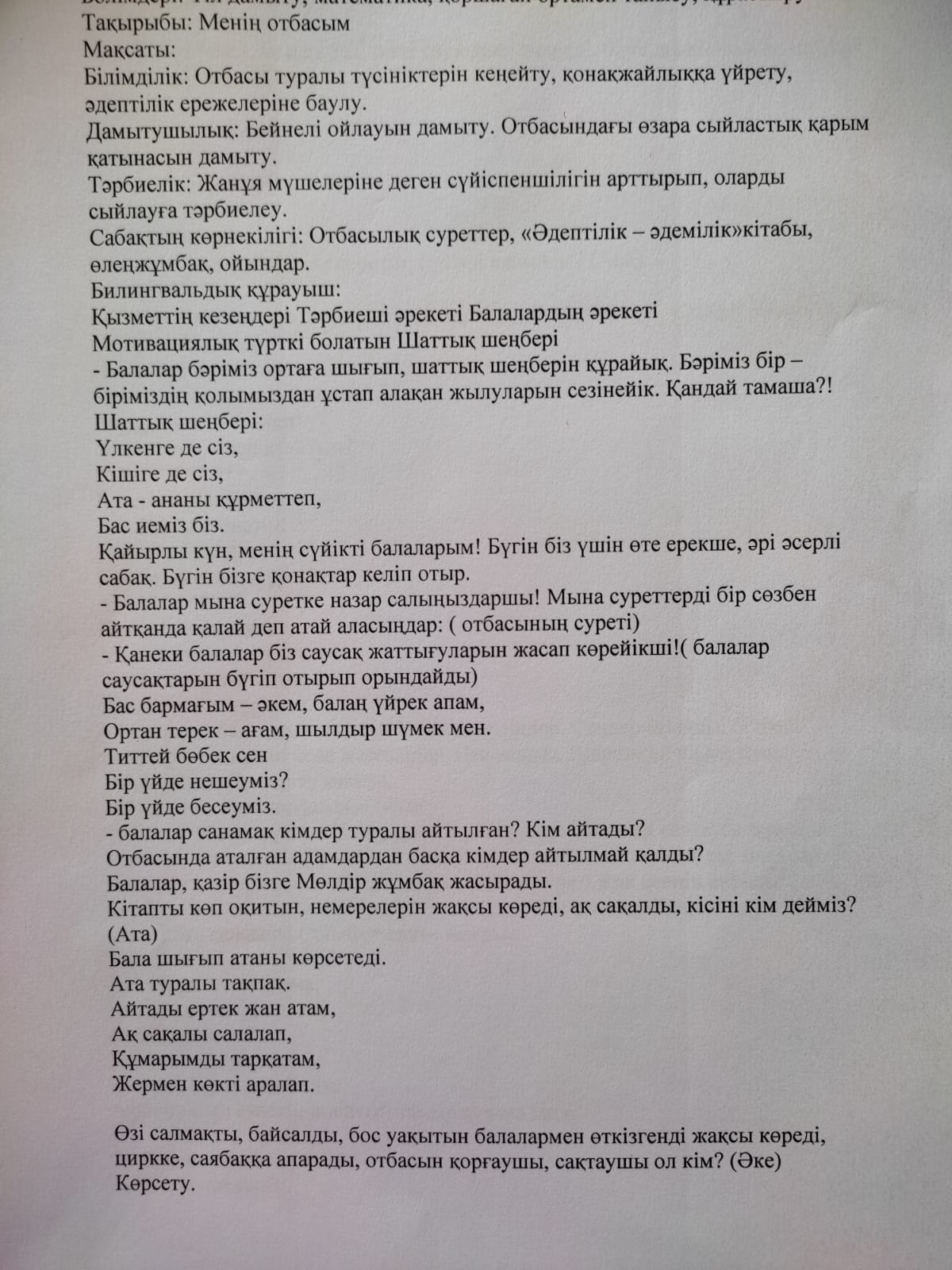 Менің отбасым (ашық ұйымдастырылған іс-әрекет)