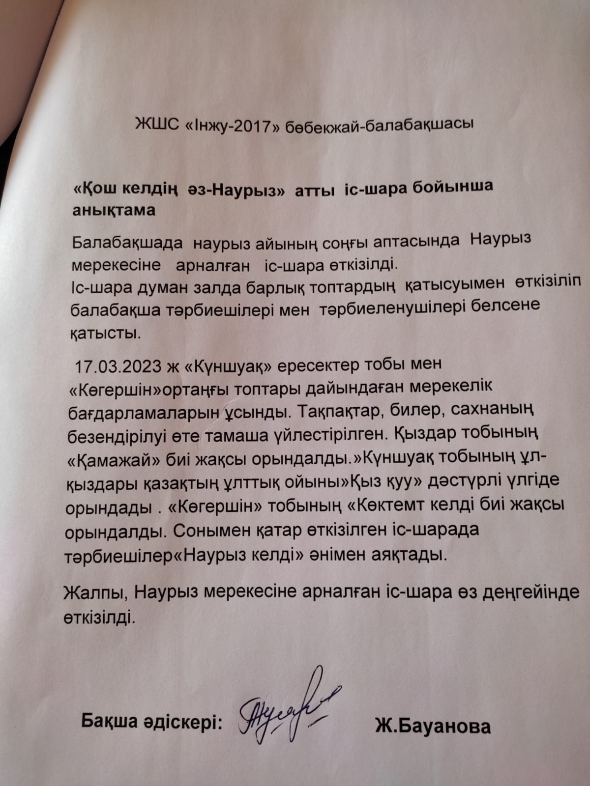ЖШС «Інжу - 2017» бөбекжай - бақшасы