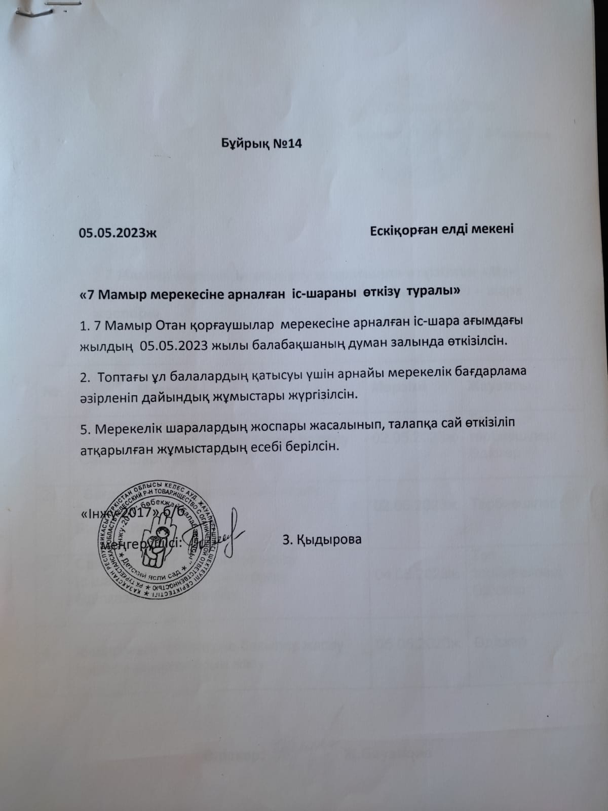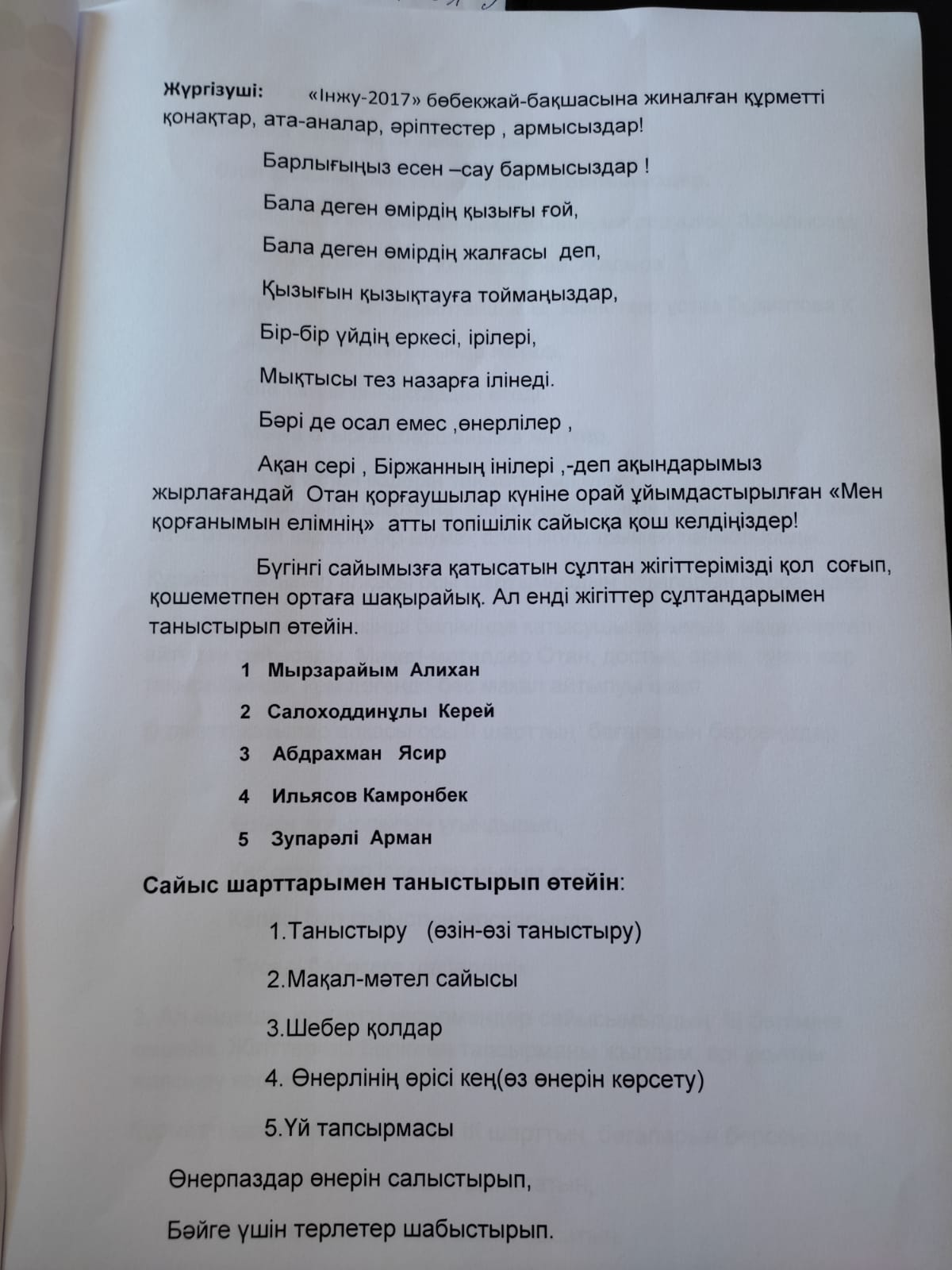 ЖШС «Інжу - 2017» бөбекжай - бақшасы