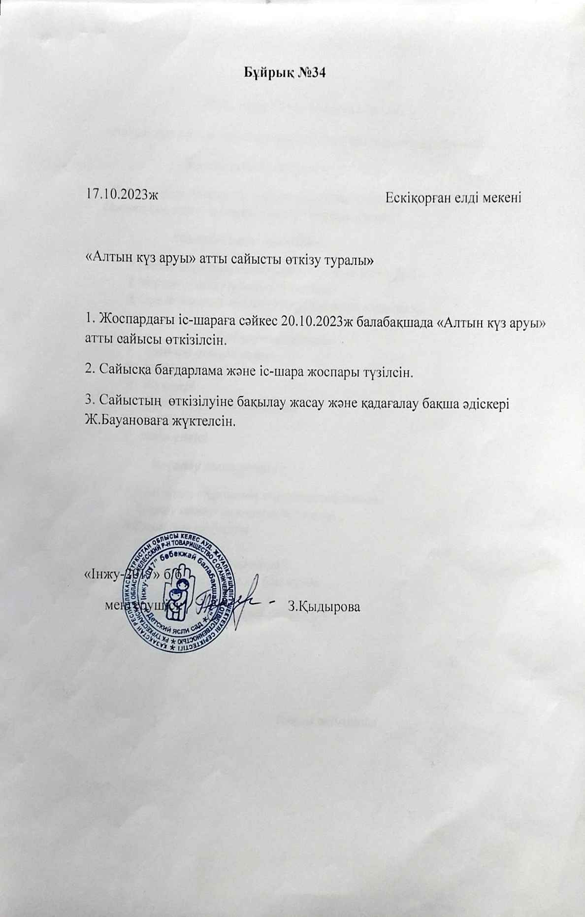 ЖШС «Інжу - 2017» бөбекжай - бақшасы