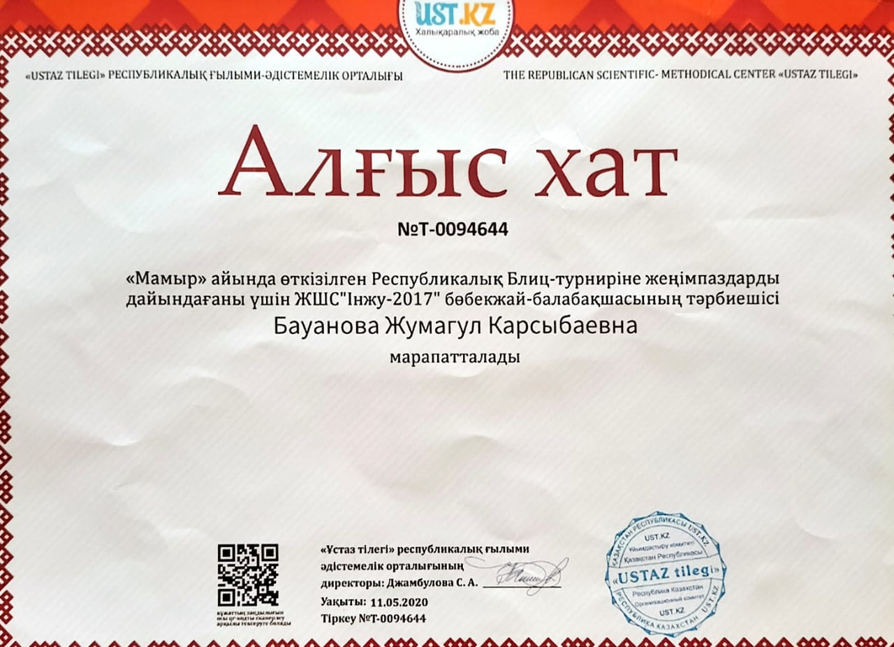 ЖШС «Інжу - 2017» бөбекжай - бақшасы